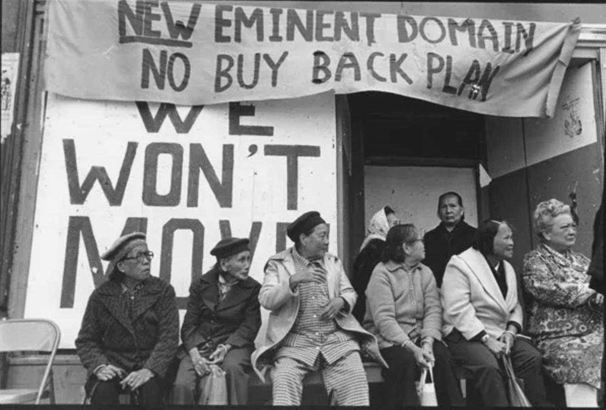 For nearly a decade, the residents of the International Hotel on Kearny Street, mostly elderly Filipino and Chinese men, survivors of a lifetime of labor and exclusion, fought to stay in their homes as developers and the city moved to demolish the building and erase what remained of Manilatown. Thousands of supporters, students, labor organizers, and community members rallied around them, forming human chains to block the eviction. On August 4, 1977, sheriff's deputies on horseback forced their way through the crowd and carried the last residents out into the street. The I-Hotel was torn down. But the fight for the I-Hotel became the defining story of what gentrification does to working people, and its memory continues to fuel the resistance against displacement to this day.